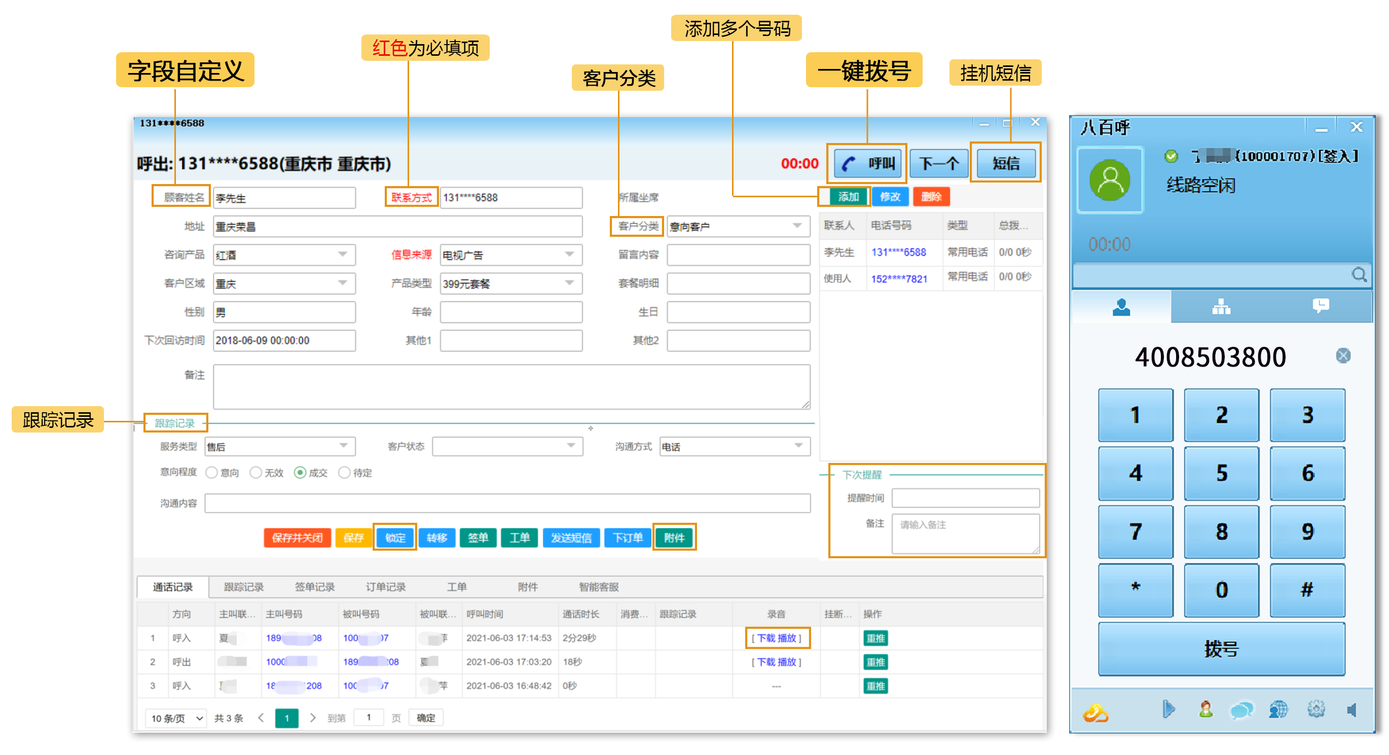 电脑自动弹出客户的相关信息及历史沟通记录,可实时完善客户档案