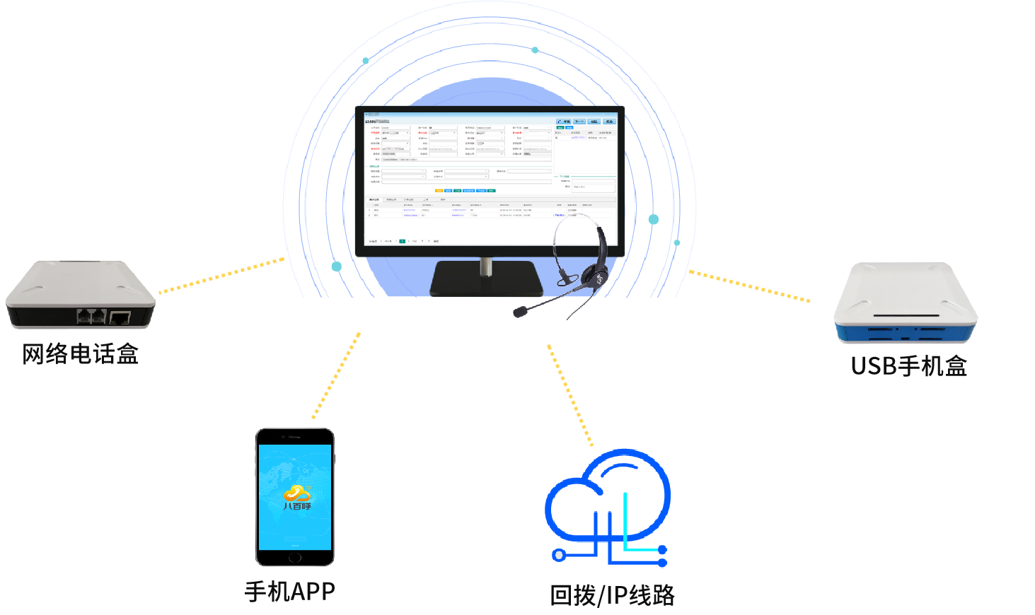 同时兼容座机、手机卡、SIP线路等多种模式;功能模块自由组合