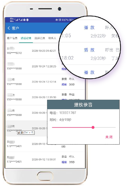 业务员移动办公,用八百呼手机APP管理客户,员工实时跟进,后台统一管理;